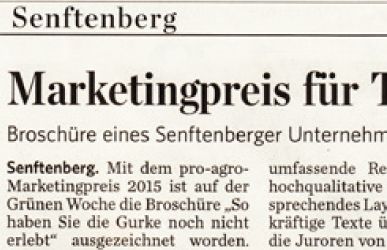 Ausgezeichnet mit dem Marketingpreis von pro agro auf der Grünen Woche! Das ist unser Werk, das wir im Auftrag des Spreewaldvereins fertigen durften. Ein Kochbuch – rund um die Gurke! Die besten Spreewälder Köche kreierten Ihre Spreewälder Gurkenrezepte, Wieduwilt Kommunikation setzte dies in Text, Foto und Grafik eindrucksvoll und lecker (!) in Szene.
